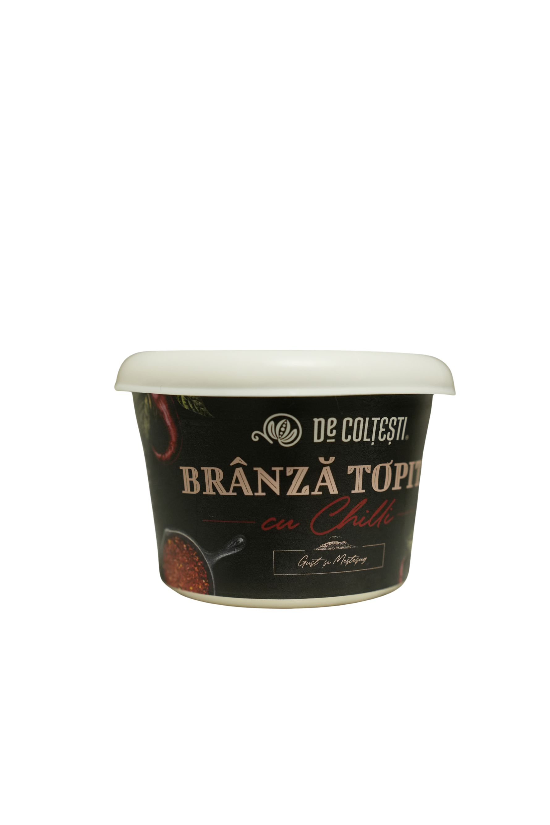 La bază stă smântâna adevărată de Colțești, cu 50% grăsime, densă și onctuoasă, peste care adăugăm mai multe sortimente de brânză maturată premium, atent alese pentru gustul lor așezat și echilibrat. Le lăsăm să se lege încet, fără grabă, până când rezultă o textură fină, cremoasă, care se întinde frumos și păstrează gustul brânzei. La final, adăugăm chili, dozat cu măsură.