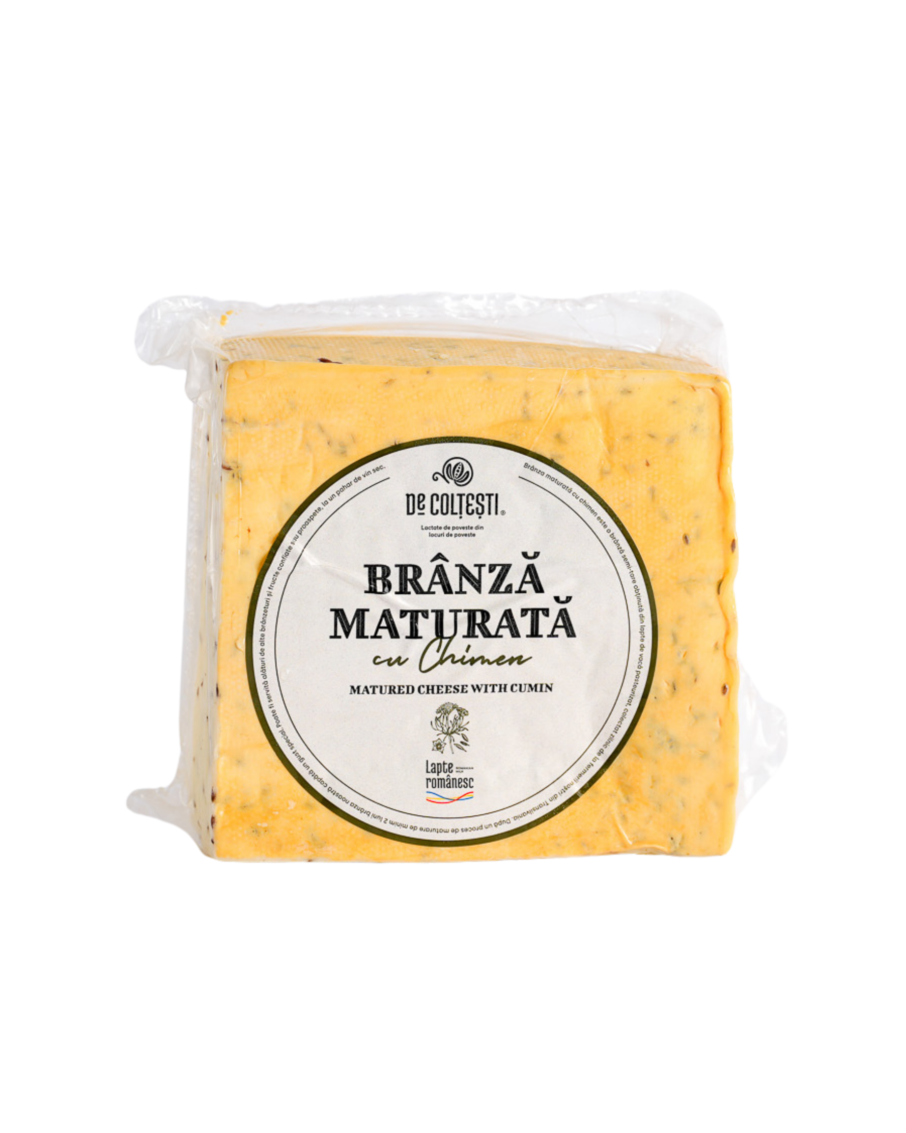 Are la baza branza trapist, o branza de tip gouda, versatila, gustul sau usor si bland fiind perfect pentru branzeturi maturate cu condimente. Semintele de chimen sunt bogate in uleiuri volatile, antioxidanti, tanoizi, minerale precum fier, cupru, calciu, potasiu, mangan, seleniu, zinc, magneziu dar si vitamine precum A, C, E si complexul de Vitamine B.